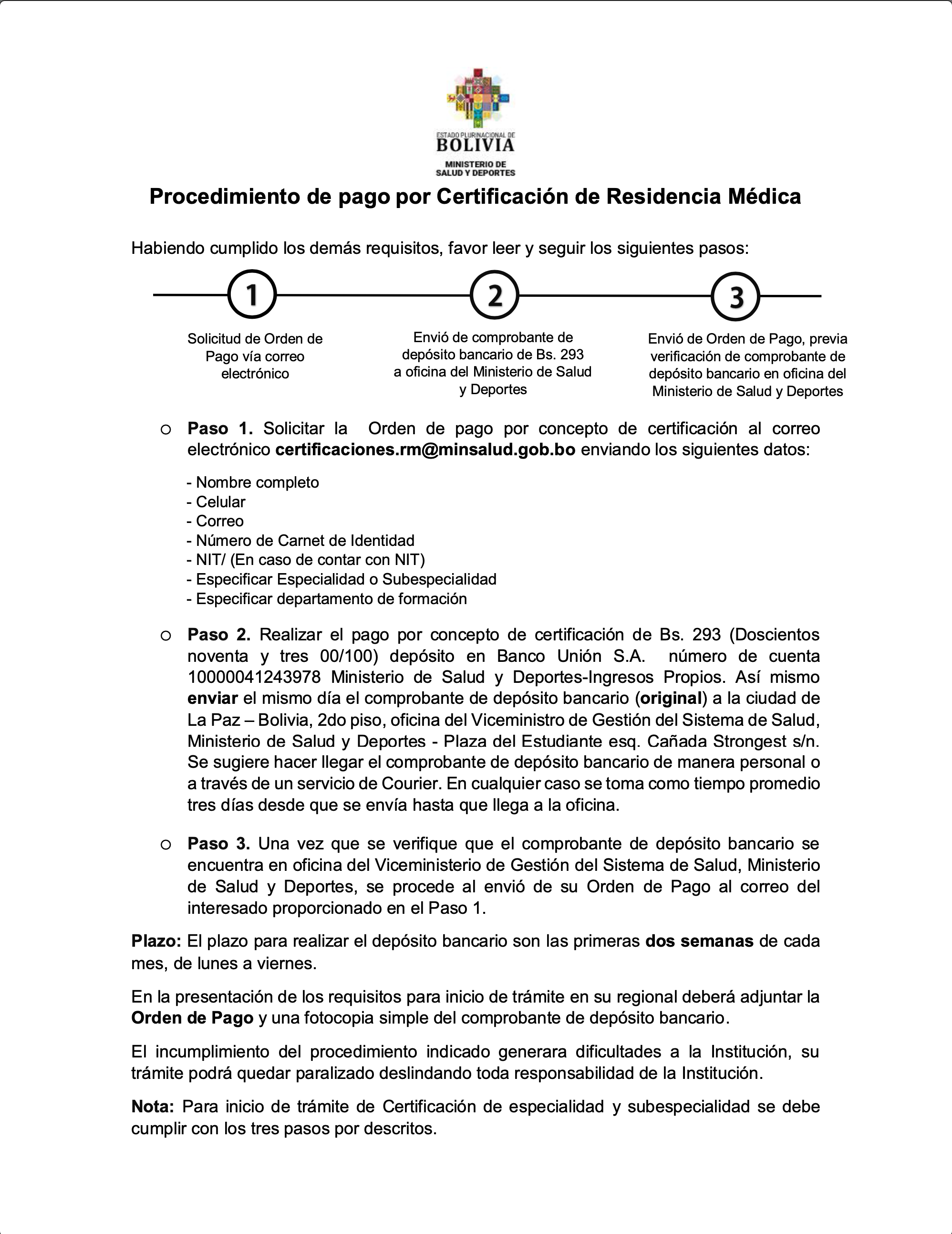 PROCEDIMIENTO DE PAGO POR CERTIFICACIÓN DE RESIDENCIA MÉDICA: