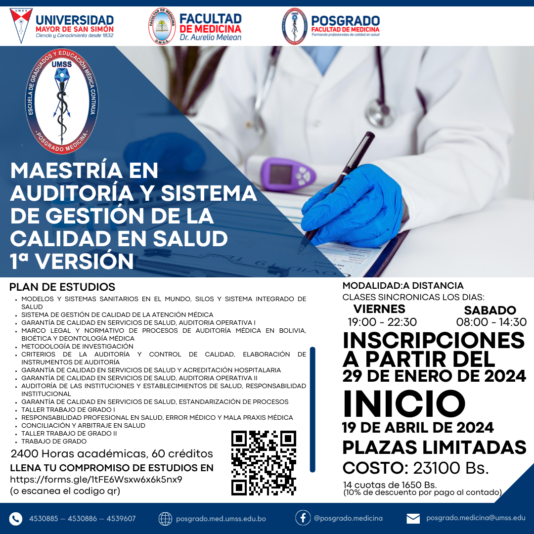 MAESTRÍA EN AUDITORÍA Y SISTEMA DE GESTIÓN DE LA CALIDAD EN SALUD 1ª VERSIÓN