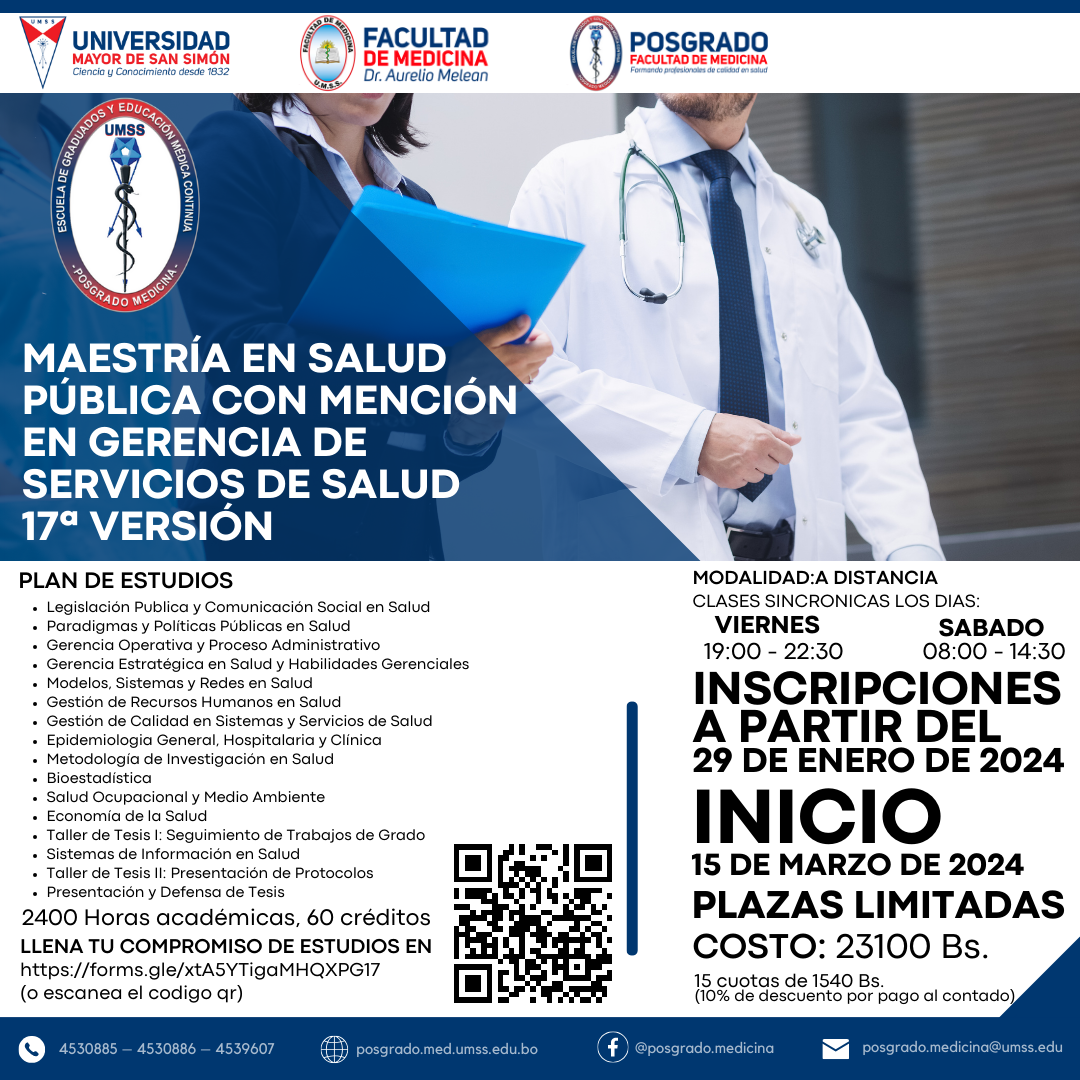 MAESTRÍA EN SALUD PÚBLICA CON MENCIÓN EN GERENCIA DE SERVICIOS DE SALUD 17ª VERSIÓN