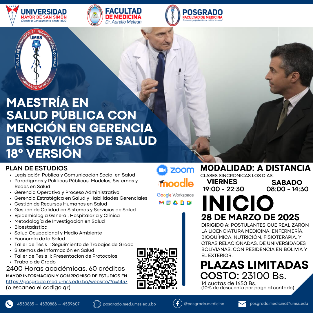 MAESTRÍA EN SALUD PÚBLICA CON MENCIÓN EN GERENCIA DE SERVICIOS DE SALUD 18° VERSIÓN